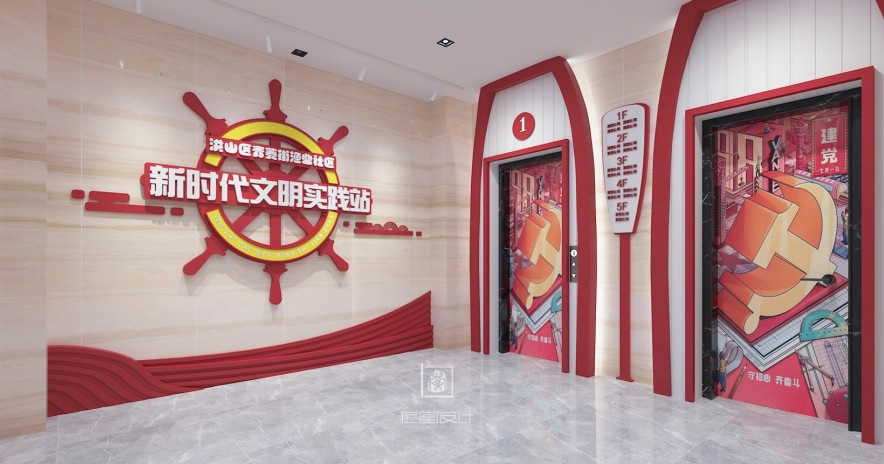 以渔业社区地域特点和发展历程,我们奠定设计主题为“乘风破浪,砥砺前行 ”元素-渔船....水....色彩-中国红、海洋蓝、活力黄